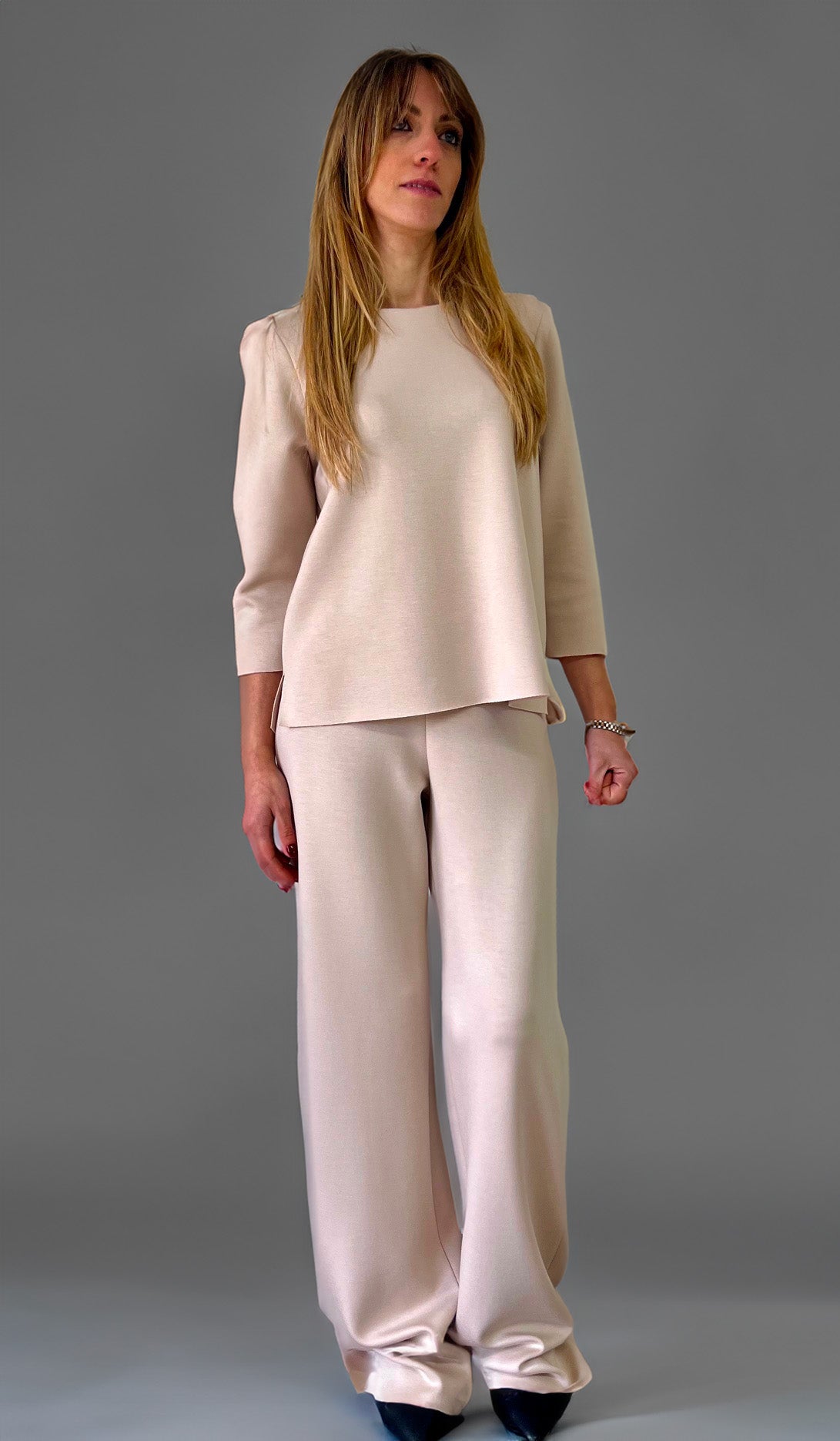 La maglia a girocollo in tessuto scuba unisce eleganza e funzionalità grazie alla sua struttura tecnica e compatta. Questo materiale offre una vestibilità sagomata e confortevole, mantenendo forma e resistenza nel tempo. Ideale per chi cerca un capo versatile dal design contemporaneo, perfetto per occasioni sia casual che più formali. La superficie liscia e leggermente elastica garantisce un comfort prolungato senza rinunciare a uno stile raffinato.